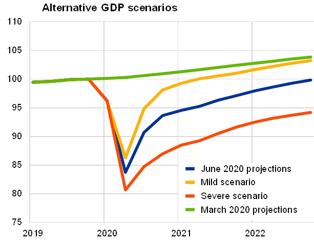 Die EZB geht zum Beispiel in ihren aktuellen Projektionen davon aus, dass das Bruttoinlandsprodukt der Eurozone im laufenden Jahr um 8,7 % schrumpfen wird. 2021 soll es sich dann um 5,2 % erholen und 2022 um 3,3 % zulegen.