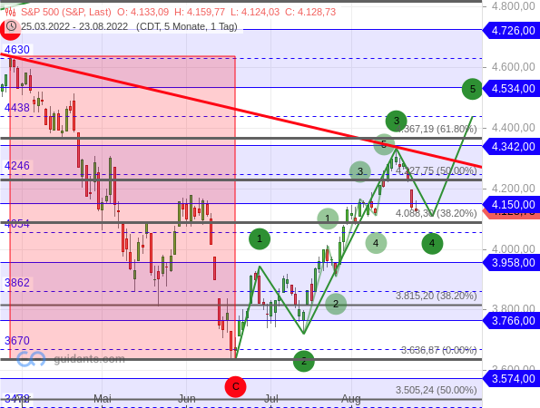 Schauen wir uns dazu heute den S&P 500 an. Diesen hatte ich hier zuletzt am 12. August in einer ausführlichen Schritt-für-Schritt-Chartanalyse besprochen (siehe „S&P 500: Erneute Gegenbewegung oder Ende der Korrektur?“). Und ich kam zu einem bullishen Szenario: