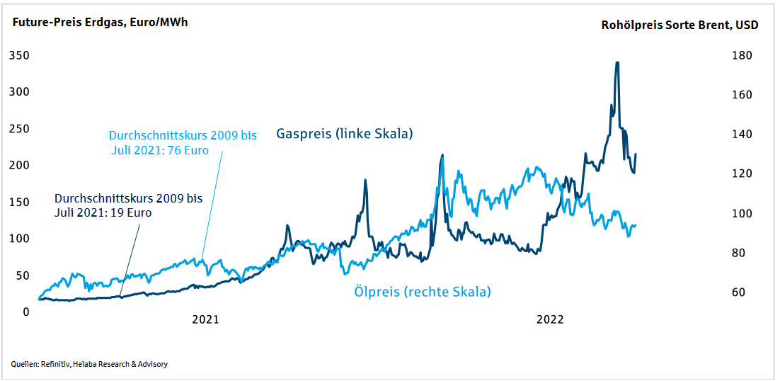 Das viel größere Problem ist die hohe Inflation. Diese setzt den Gewinnmargen vieler Unternehmen zu, weil sie die extremen Preissteigerungen in vielen Fällen nicht 1:1 an die Kunden weiterreichen können. Und da die Inflation insbesondere aufgrund der anhaltend hohen Energiepreise (siehe folgende Grafik) auf absehbare Zeit weiterhin die Ziele der Notenbanken von etwa 2 % deutlich verfehlen wird, ist das Gewinnwachstum auch auf absehbare Zeit begrenzt. Nicht ohne Grund haben Analysten die Gewinnerwartungen bis Mitte des kommenden Jahres kontinuierlich zurückgeschraubt (siehe dazu auch Börse-Intern vom 26. August). Und deshalb haben die Aktienmärkte aus meiner Sicht am Dienstag auch so stark auf die US-Inflationsdaten reagiert.