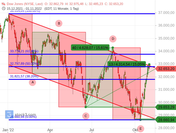 Nach bereits 3 aufeinanderfolgenden Zinserhöhungen um 0,75 Prozentpunkte erwartet der Markt eine weitere Erhöhung in dieser Größenordnung, auf eine Spanne von 3,75 % bis 4,00 %. Und wahrscheinlich wird im Dezember ein Schritt um +0,5 Prozentpunkte folgen, worauf sich die Fed aber heute natürlich noch nicht eindeutig festlegen wird. Es dürfte beim Hinweis bleiben, dass weitere Zinsanhebungen angemessen sein werden, darüber aber datenabhängig entschieden wird.