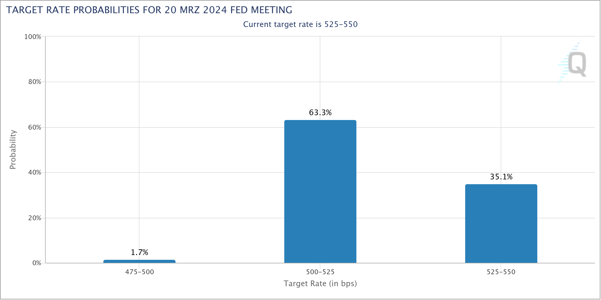 Geändert hat sich dadurch an den Finanzmärkten aber relativ wenig. Vor allem in den USA lassen die Zinssenkungsspekulationen kaum nach. Für März steht die Wahrscheinlichkeit für einen ersten Zinsschritt aktuell bei 63,3 %.