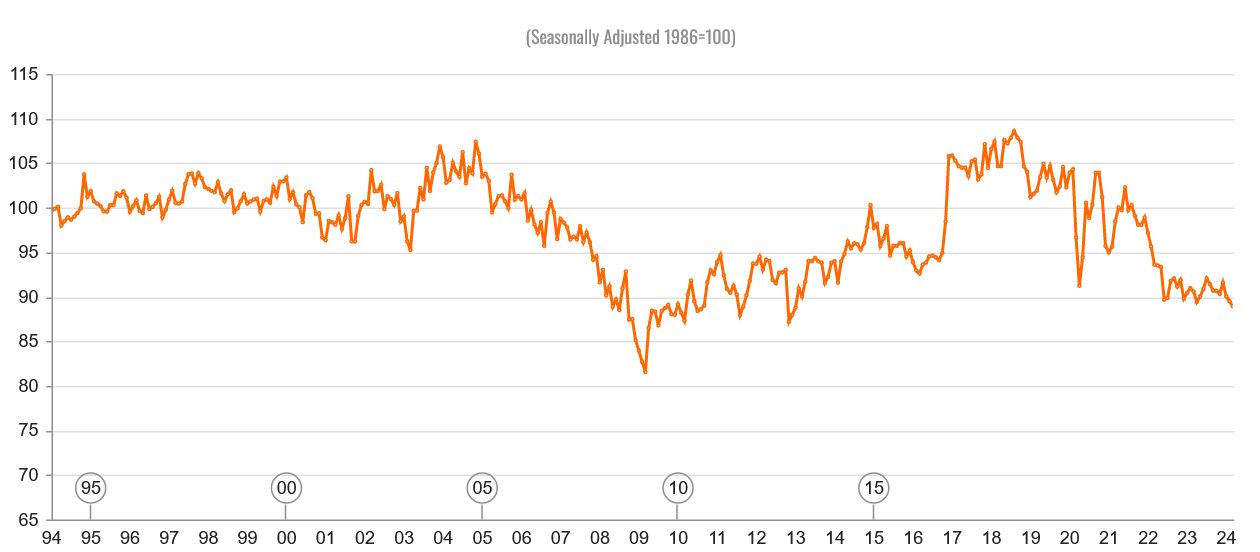 Und so verwundert es auch nicht, dass an den Terminmärkten eine Zinssenkung im Juni, die lange Zeit als gesichert galt, inzwischen nur noch mit einer Wahrscheinlichkeit von 56 % erwartet wird.