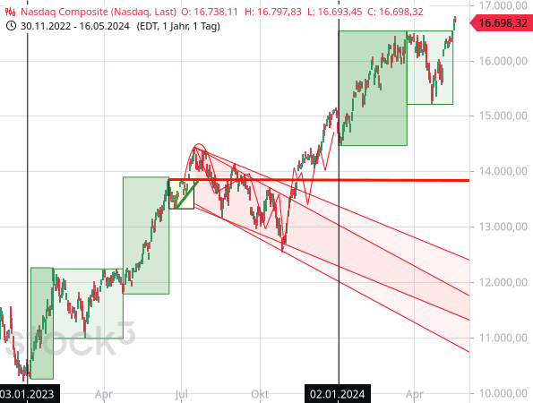 Und wenn man sich jetzt den aktuellen Kursverlauf des Nasdaq Composite anschaut, dann sieht es sehr danach aus, als würde sich 2023 wiederholen.