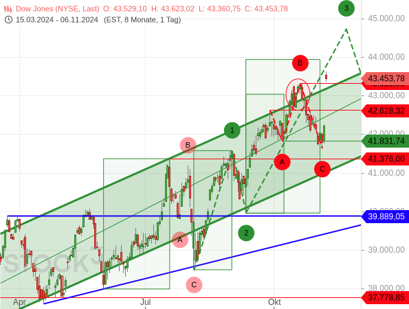 Die Aktienkurse in den USA zogen kräftig an. Der Dow Jones explodierte förmlich und stieg fast unaufhörlich und fahnenstangenartig über das Rekordhoch vom 21. Oktober bei 43.346,08 Punkten.