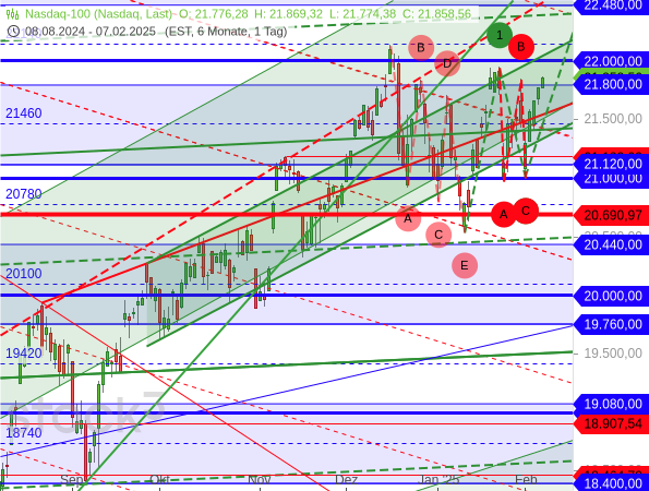 Beim Nasdaq 100 folgte auf die ABCDE-Formation inzwischen auch eine ABC-Korrektur.