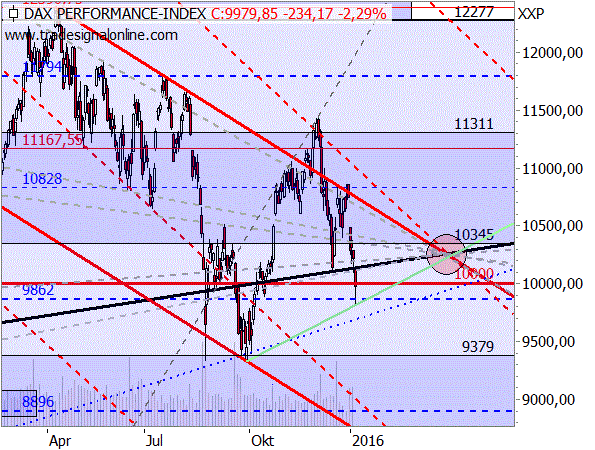 Nachdem in China die Börsen erneut nach einem Sieben-Prozent-Einbruch vom Handel ausgesetzt wurden, kam es auch im DAX zu fast „panikartigen Verkäufen“. Dabei wurde auch die 10.000er Marke nach unten gebrochen. Im Tief fiel der DAX sogar auf 9.810 Punkten konnte sich dann aber wieder etwas erholen. Es geht die Angst um, dass die Aktienmärkte in China einen richtigen Crash hinlegen und dadurch eventuell auch die chinesischen Banken ins Straucheln kommen könnten. Wenn man jetzt die Kommentare dazu liest, die von allen Seiten auf die Medien prasseln, kann einem angst und bange werden.