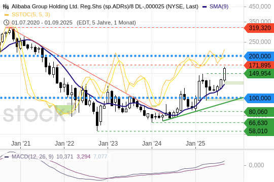 Warum 200 USD so wichtig sind? Oberhalb dieser Marke öffnen sich charttechnisch die Türen zu einem mittelfristigen Rally-Szenario. Langfristig betrachtet ist ohnehin mehr drin: 2020 notierte Alibaba noch bei rund 320 USD. Ein Comeback in diese Regionen wäre kein Ding der Unmöglichkeit – vor allem dann, wenn die geopolitischen Wolken über China aufklaren und die Wirtschaftsdaten stabil bleiben.