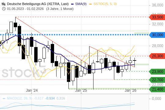 Es kommt wieder Bewegung in die Aktie der Deutsche Beteiligungs AG (DBAG). Am Mittwoch, 18.2.26, legte der Titel um 3,4 % zu und zählte damit zu den Outperformern im SDAX.